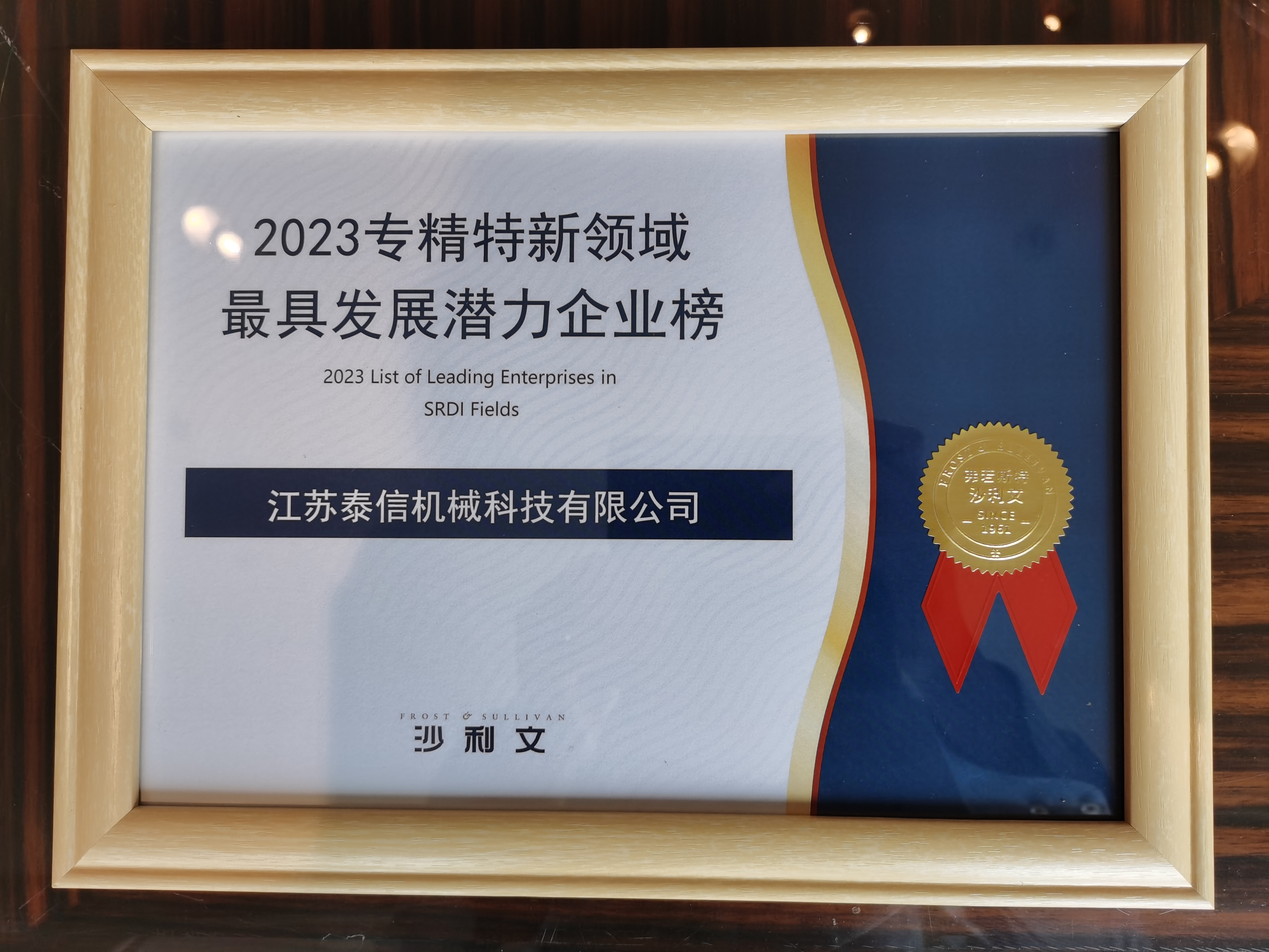 喜報┃泰信榮獲“2023專精特新領域最具發(fā)展?jié)摿ζ髽I(yè)”