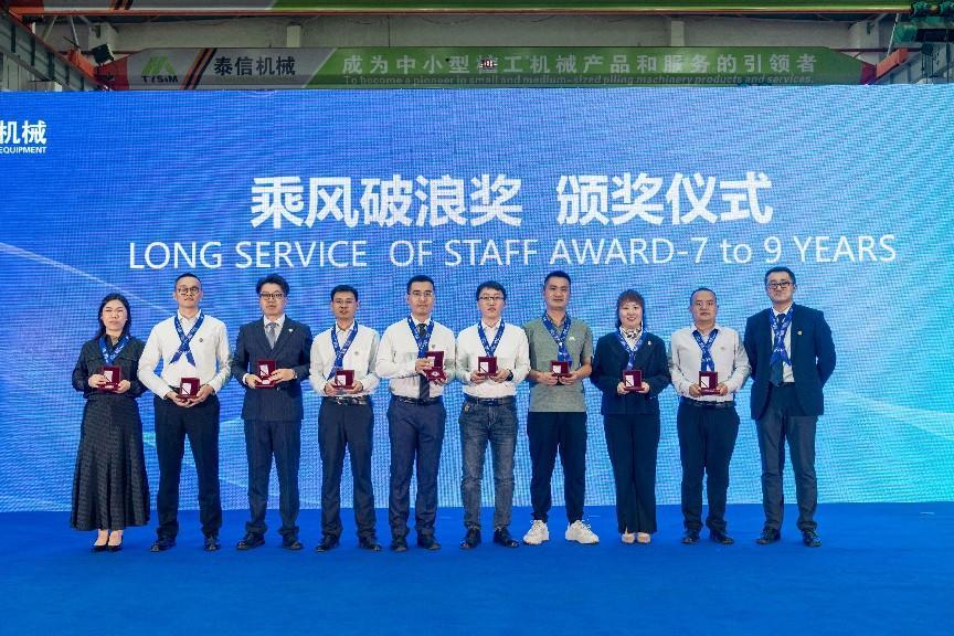 十年相伴,離不開泰信員工的辛勤付出,泰信機械董事長辛鵬、中國工程機械學會樁工機械分會秘書長郭傳新為泰信機械老員工頒獎并授紀念幣。